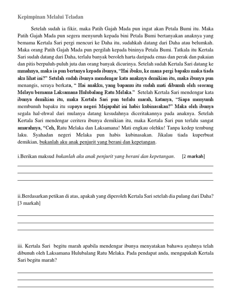 Prosa Tradisional Kepimpinan Melalui Teladan By Puteri Batrisyia